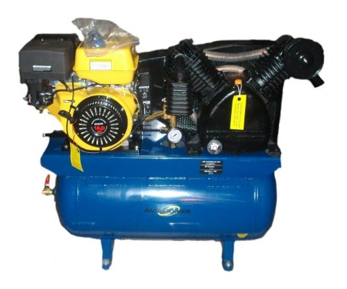Air Compressor - Electric Start - New - Morpower - Extremely Powerful Quick Refill of Tank - Economical to operate - 2 Stage Compressor Pump - 30 Gallon Horizontal Tank - Great for Shop or Service Truck - 14 Horsepower Overhead Valve Gasoline Engine - 180 PSI Max - ASME Approved Tank - Commercial Grade Product - Includes pressure regulator - Gauge - oil lubricated - Heavy Duty Air Compressor Pump - Unloader with idle down included - Battery and battery tray not included - Warranty 12 months